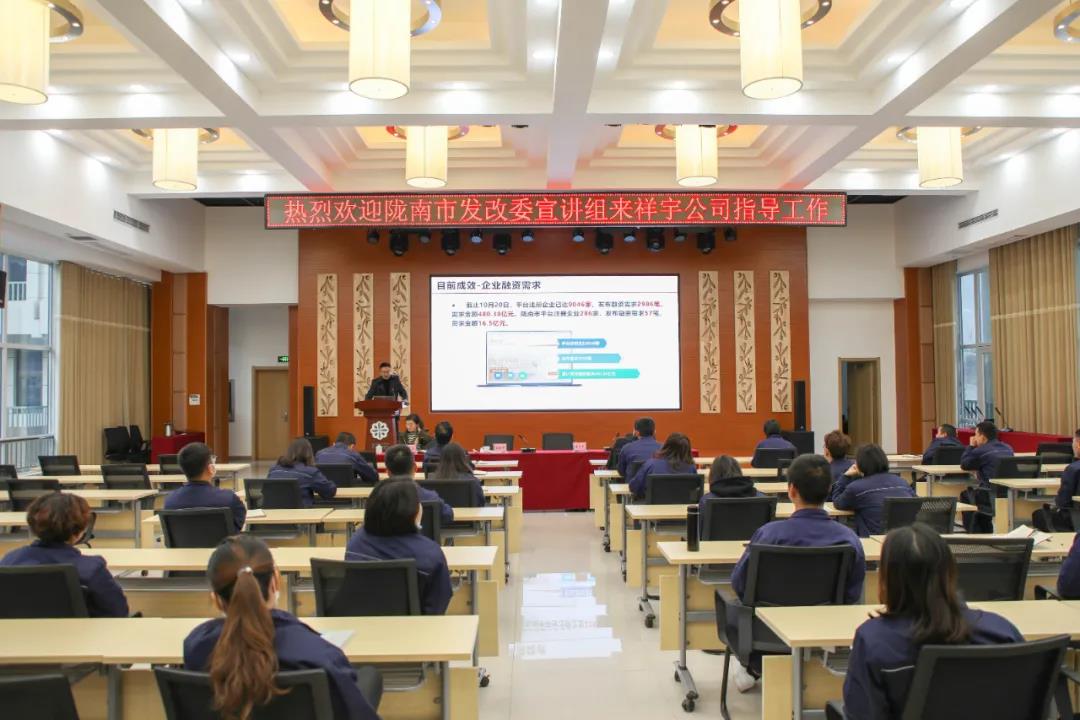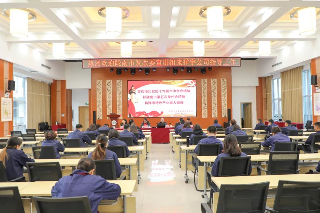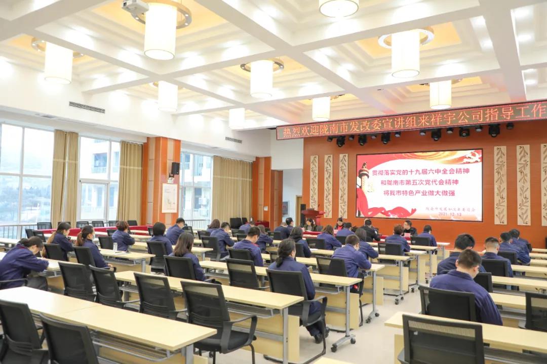 市發(fā)改委宣講團走進祥宇生態(tài)產業(yè)園宣講黨的十九屆六中全會及隴南市第五次黨代會精神。