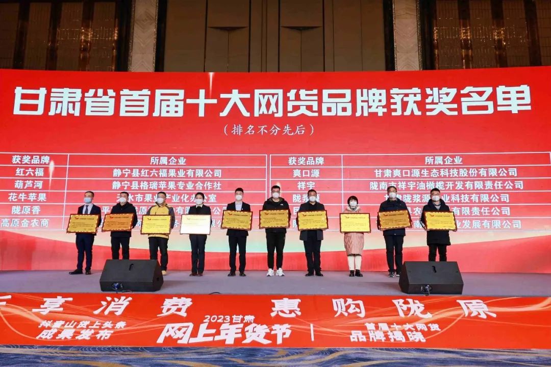 2023甘肅年貨節(jié)活動正式啟動,活動現(xiàn)場宣布“甘肅省首屆十大網(wǎng)貨品牌”評選結(jié)果,并現(xiàn)場為獲獎企業(yè)頒獎 。